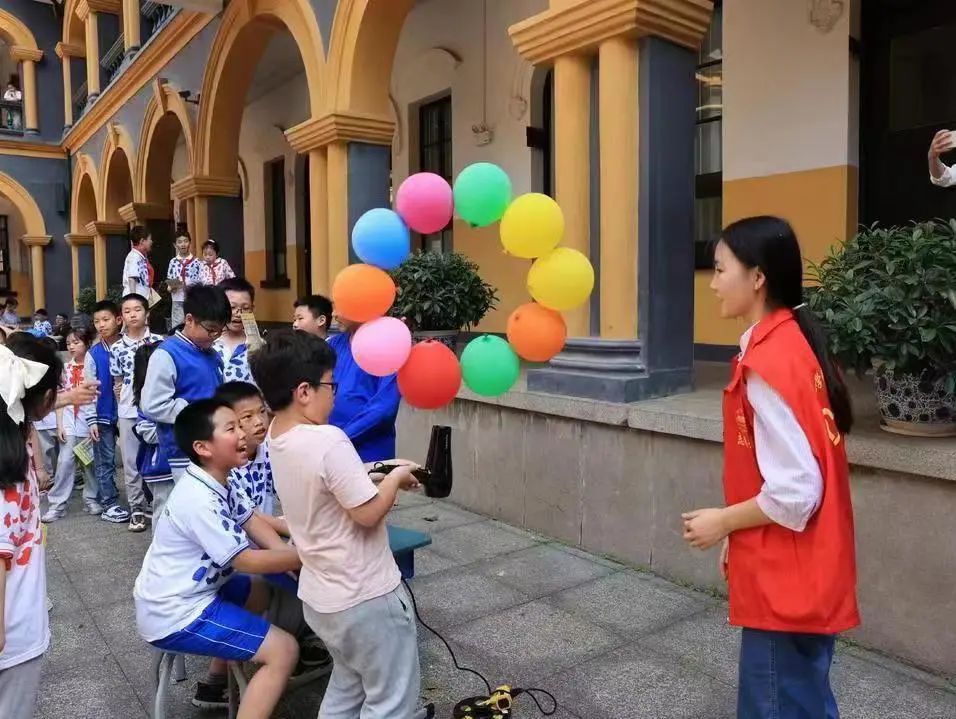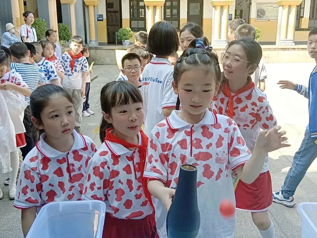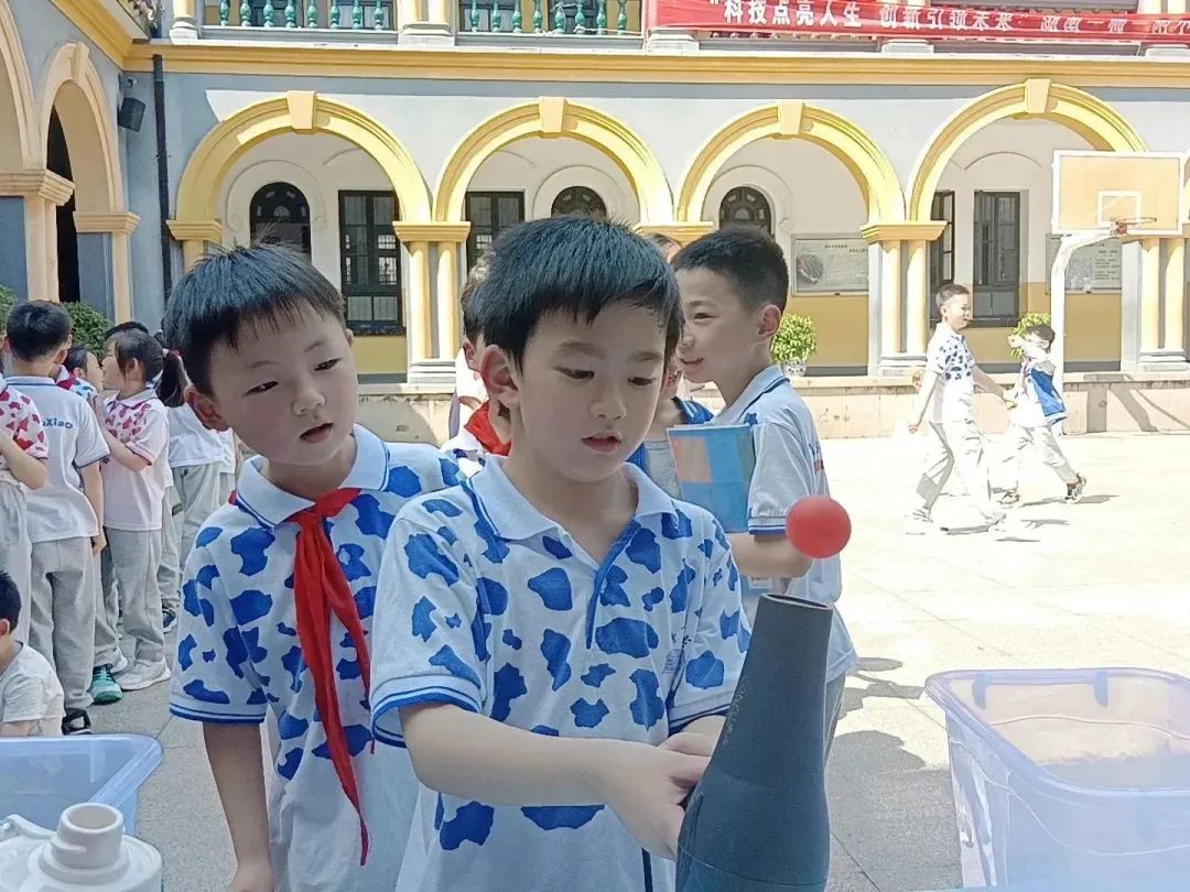 其中,志愿者围绕吹风机运送乒乓球这一项目,通过“生活用品+互动教学”的模式,鼓励孩子们自主思考,积极调动孩子们对气流运动的求知欲,带领孩子们在一次次“运送乒乓球”中了解伯努利原理。