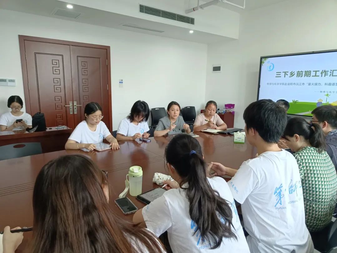 会上,首先由三下乡队长宋诗语作前期工作汇报,接着李珊老师就三下乡安全问题作讲话,提醒员工带好蚊帐,谨防溺水。而后,曾书记强调四点注意事项:一是多学习,多锻炼,二是吃苦耐劳,有问题及时反馈,三是多思考,多创新,注意团队合作,四是注意工作和身体,安全第一。