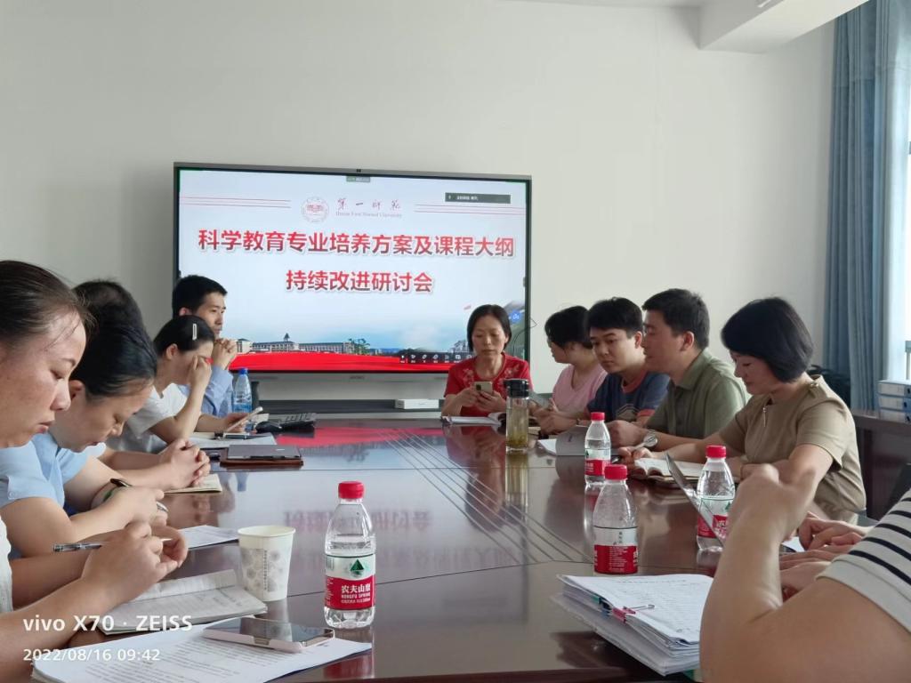 bevictor伟德官网于2022年8月16日上午,在百熙楼1013召开科学教育专业培养方案及课程大纲持续改进研讨会。邹立军经理助理主持会议,参与会议的人员有许兰副经理,刘洁文、龚婧以及参与专业认证的科学教育系、物理系和化学系老师。黄文主任根据前期专家讲座的精神提出培养方案和课程大纲持续改进的几个问题。第一,目标定位需要三个必备,即服务面向、职业能力特征、人才定位。科教培养方案目标还存在定位描述不妥当,培养思路和培养目标混同等问题,此次会议全体参会人员字斟句酌研讨了培养目标的表述。第二,就达成毕业要求的高关联课程及其矩阵进行研讨。第三,教育见习、教育实习和教育研习等教育实践类课程支撑毕业要求矩阵需三习贯通,保持递进关系。第三,课程大纲是执行培养方案的重要纲领性文件,需根据最新模板修订课程大纲。最后,许兰副经理总结发言指出,必须知晓熟悉去年教育部采集的教学状态数据报告,自评报告和采集数据要保持一致,可以补充说明我们的改进情况;按照高要求修改教学大纲是对公司“两性一度”金课建设的重要内容。
