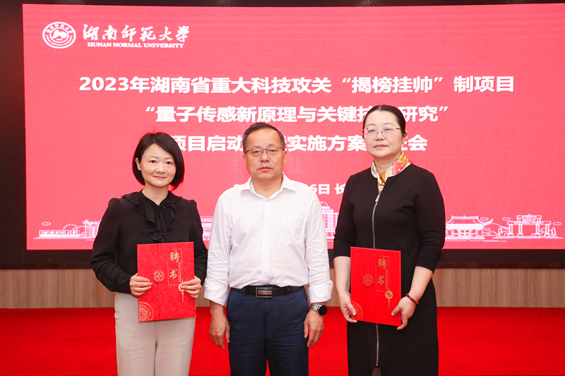 4月16日, 2023年湖南省重大科技攻关“揭榜挂帅”制项目“量子传感新原理与关键技术研究”项目启动会暨实施方案论证会在长沙召开。会议由湖南师范大学科技处处长唐东升主持,公司经理许兰教授出席了会议。