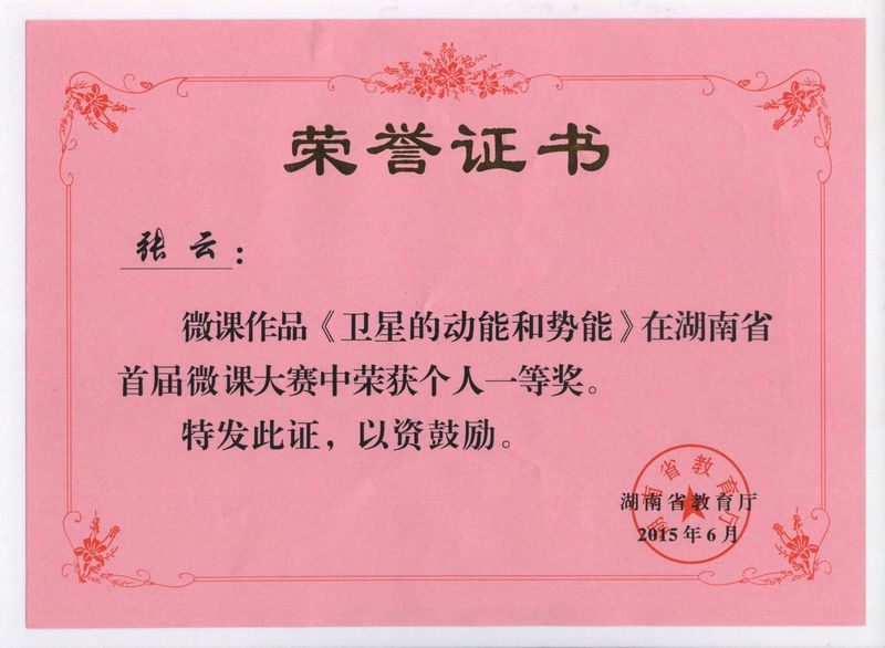 张云老师获湖南省首届微课大赛个人一等奖