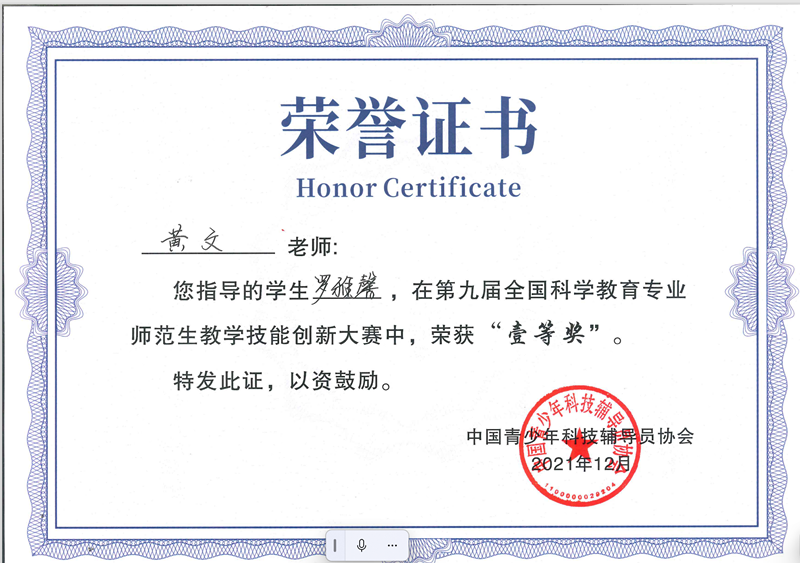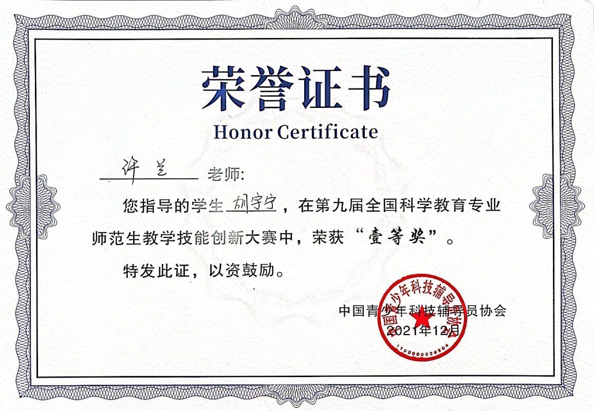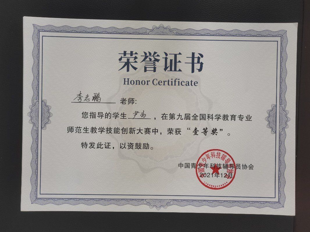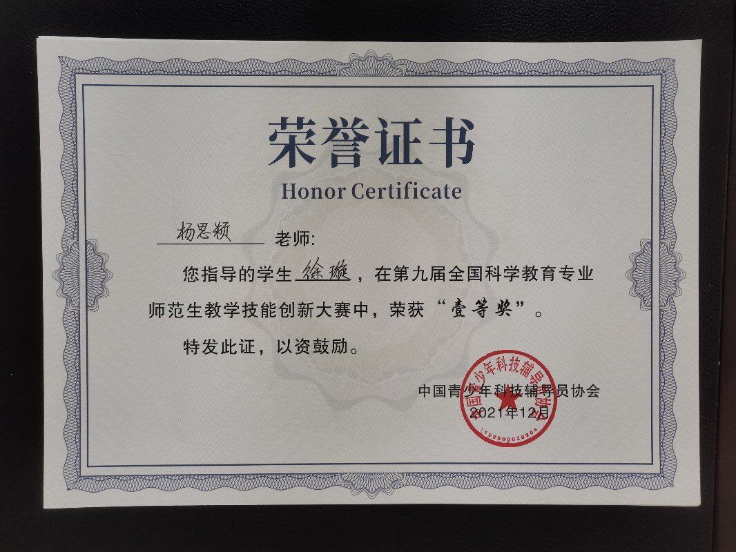 许兰等指导员工获第九届全国科学教育专业师范生教学技能创新大赛一等奖8项