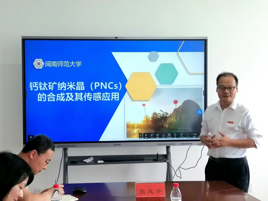 2023年5月26日上午,闽南师范大学张茂升教授受邀于百熙楼1013室为公司物理系、化学系全体教师作题为“钙钛矿纳米晶(PNCs)的合成及其传感应用”的学术讲座。讲座由bevictor伟德官网副经理(主持行政工作)许兰教授主持。